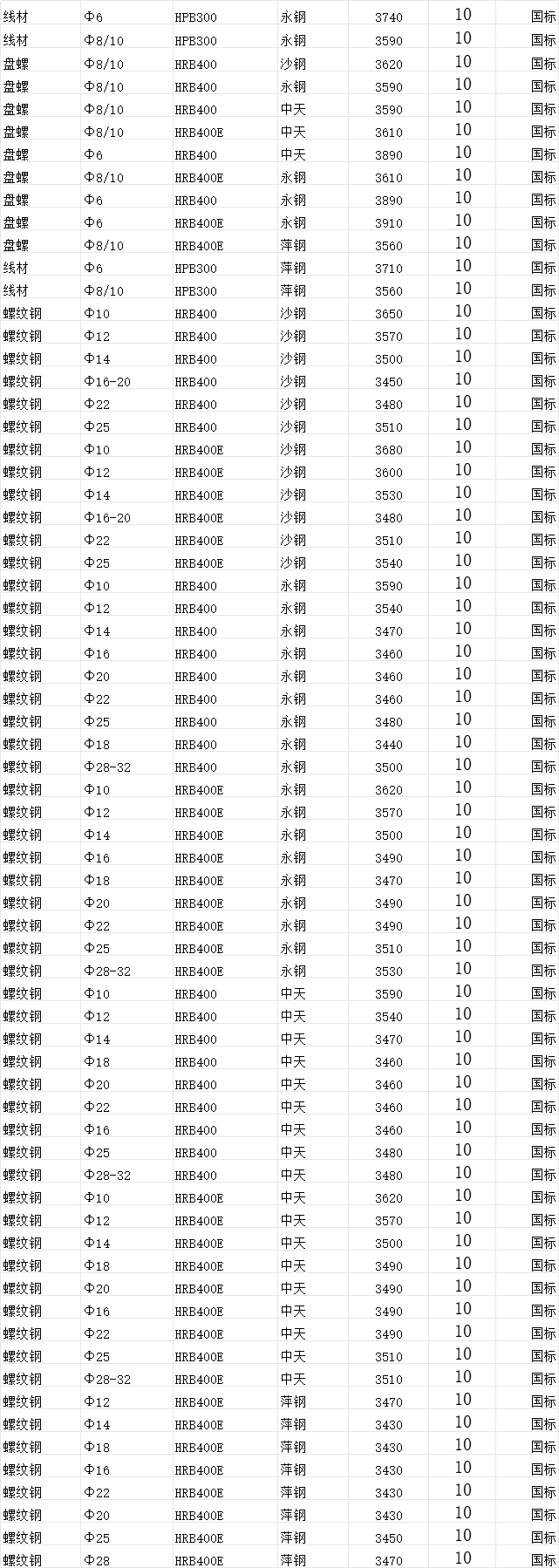 2025年10月6日(10.15)舟山锦海仓钢材建筑材料价格