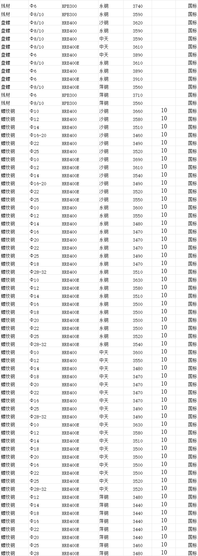 2025年10月10日舟山锦海仓钢材建筑材料价格